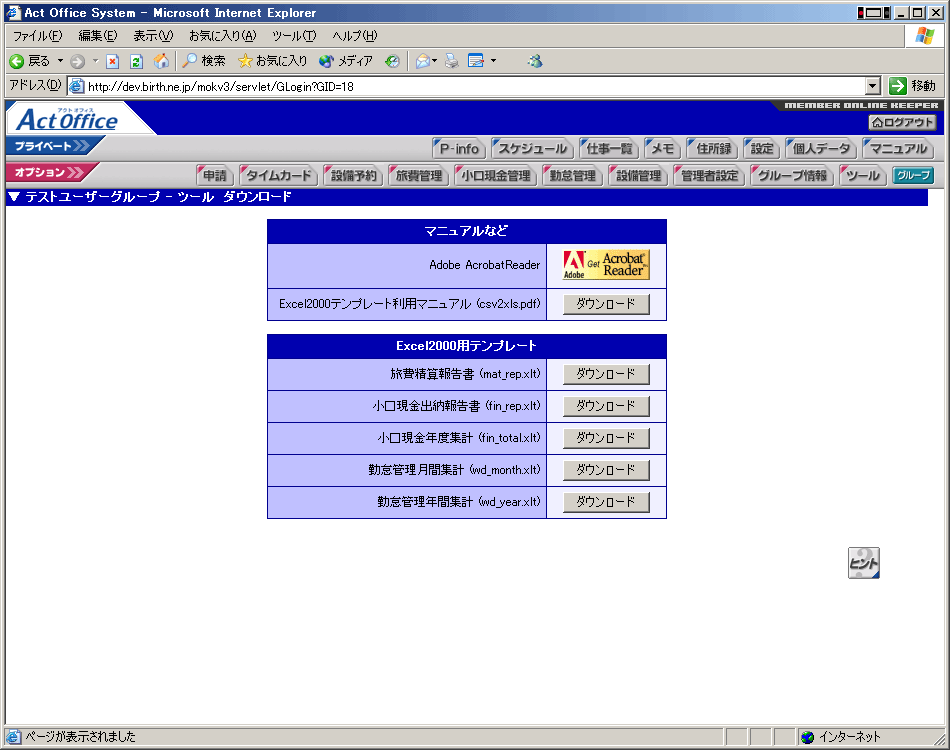 その際には「旅費精算報告書」「小口現金出納報告書」「小口現金年度集計」「勤怠管理月間集計」「勤怠管理年間集計」等の、それぞれのCSVデータに対応した帳票化をするのに便利なインポート用テンプレートも用意されていますので、アクトオフィスに蓄積されているデータを、ほぼそのままの形で手元のパソコンで活用することも出来るようになっています。
